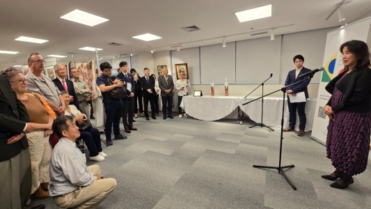 Em seu discurso, a Cônsul-Geral Yoriko Suzuki expressou sua alegria em retornar ao Brasil após quase 30 anos e destacou a importância deste ano comemorativo, agradecendo a todos pelo empenho e dedicação para a realização bem-sucedida da mostra.